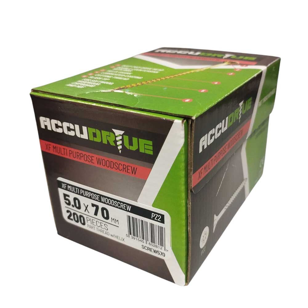 Experience the ultimate combination of strength, durability, and reliability with our Accudrive 5 x 70 screws. Packaged in a box of 200, these screws are designed to provide an unparalleled level of performance for all your fastening needs. Whether it's for construction, carpentry, or DIY projects, these screws are the perfect fit for any task.