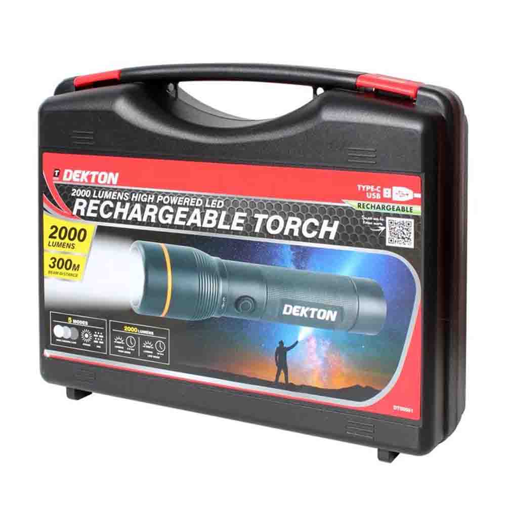 With the Dekton 2000 Lumen Pro Recharge Torch, you're investing in reliability, performance, and convenience. Don't let the darkness hinder your tasks or adventures. Equip yourself with the Dekton torch and light your way to success!