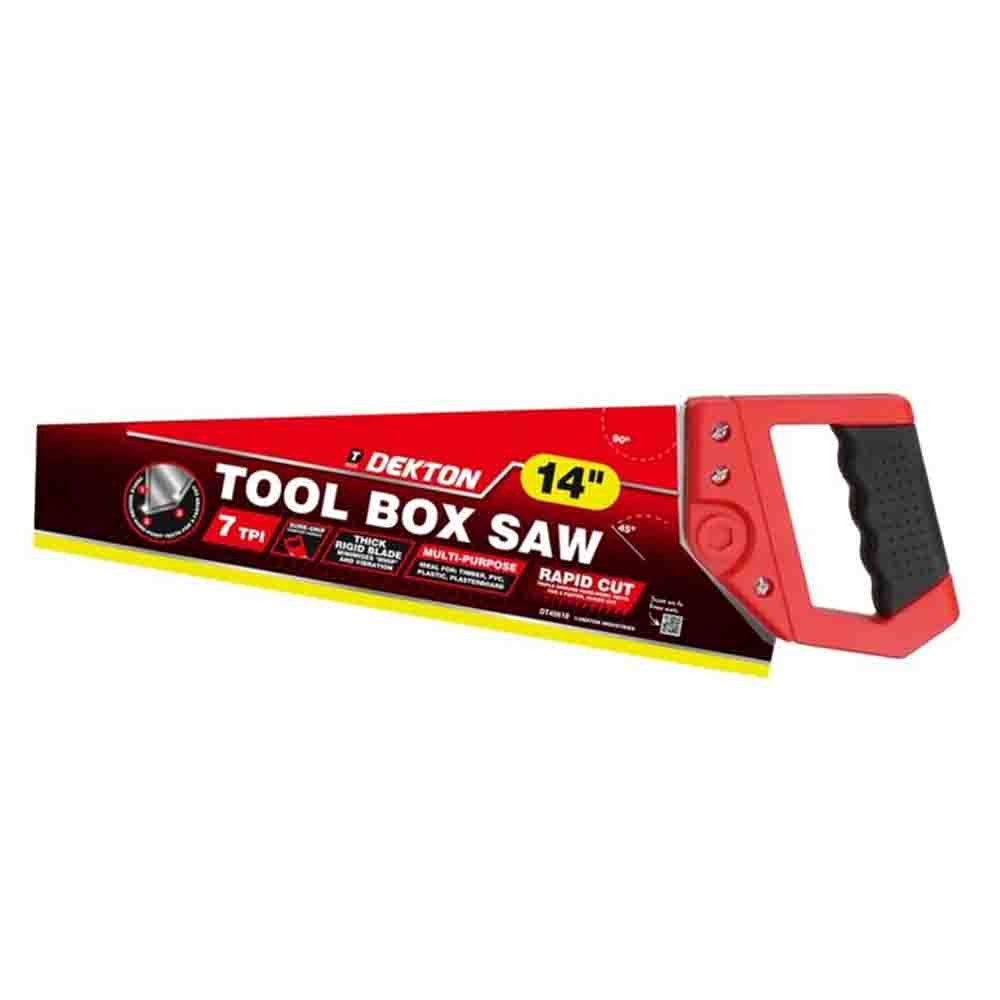 Discover a versatile, durable, and efficient solution to all your cutting needs with the Dekton 350mm 14" Toolbox Saw. Crafted with precision and performance in mind, this tool is a must-have addition to your toolkit, whether you're a professional carpenter, a DIY enthusiast, or simply someone who appreciates quality tools.