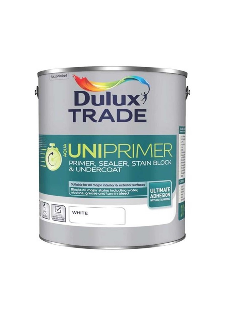 Dulux Trade Aqua UniPrimer is a high-performance, fast-drying, water-based primer designed with advanced adhesion for a wide range of interior and exterior surfaces, including wood, metal, uPVC, and glossy pre-painted finishes. It penetrates porous materials, seals surfaces, blocks stubborn stains, and prevents rust. With excellent opacity and a professional finish, it can also serve as an undercoat, making it an ideal choice for any project.