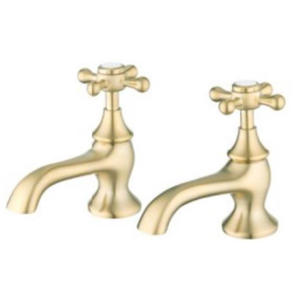 Transform your bathroom into a haven of luxury with the Merrion Brushed Brass Cross Head Bath Tap. This stunning piece of bathroom hardware is not just a functional fixture, but a design statement in itself, sure to add a touch of class to your home. With its beautiful brushed brass finish and classic cross head design, it is the perfect blend of style and functionality.