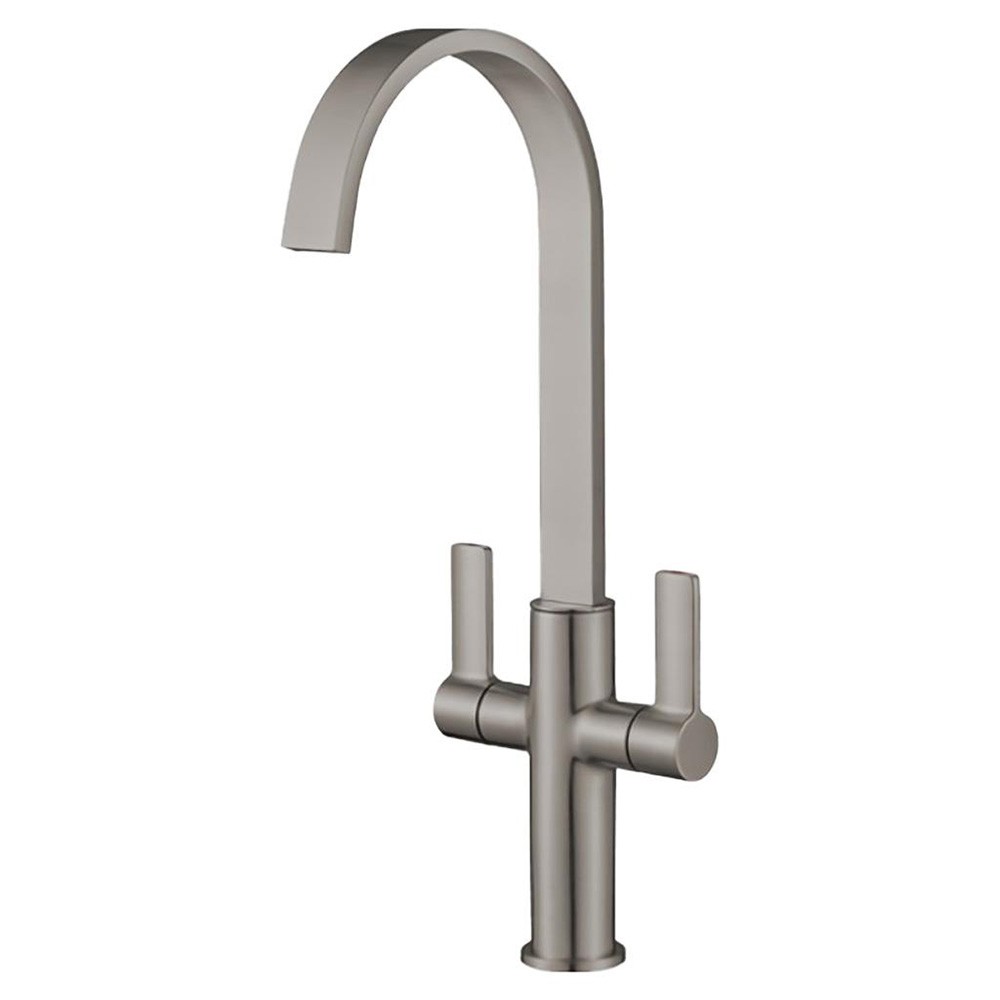 The Pegler Jeroni 2 Handle Sink Mixer Swept Spout Brushed Nickel is an excellent addition to any modern kitchen. Combining functionality with aesthetic appeal, this sink mixer enhances the style and utility of your kitchen like no other.
