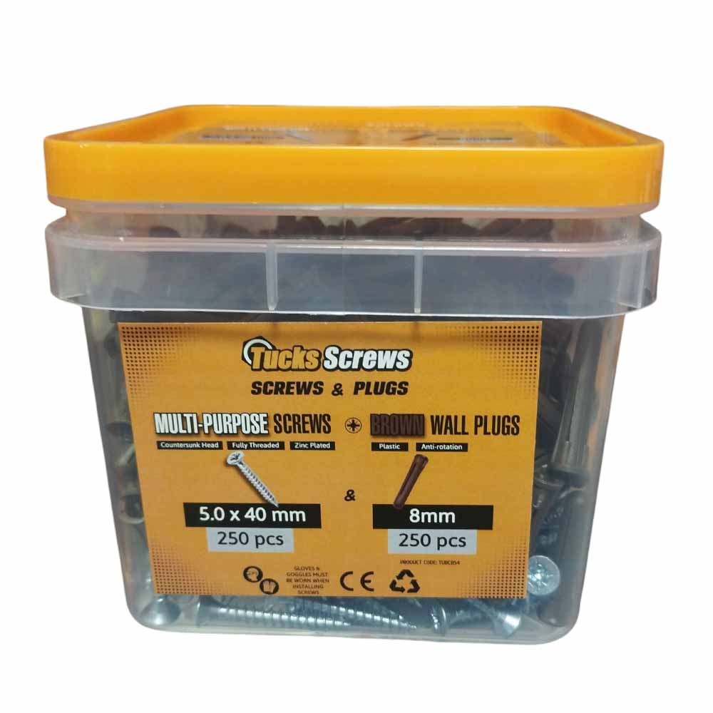Experience a whole new level of efficiency and durability with our Tucks 5x40mm Woodscrews and M8 Brown Plug Tub 500 - a perfect blend of strength and reliability for all your fastening needs.
