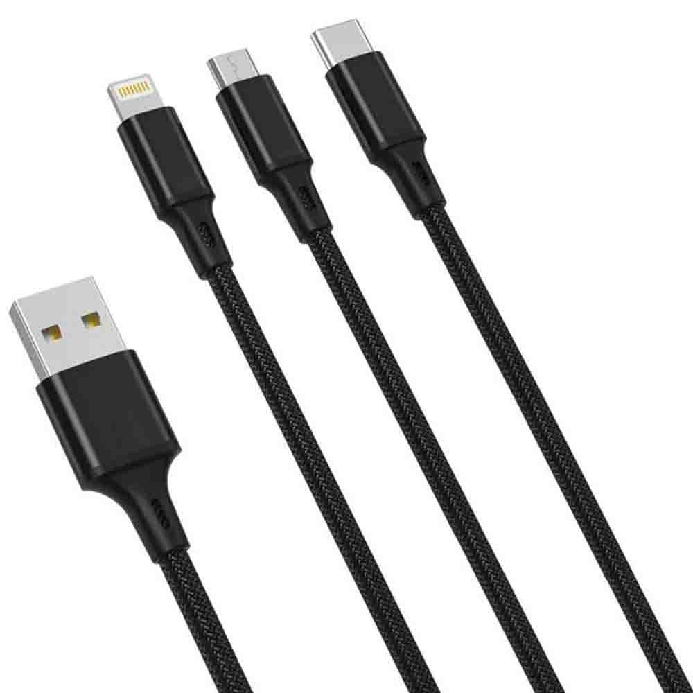 The Xo 3 In 1 2.4a USB Cable 1.2m Black NB173 is not just any ordinary cable. It's a flexible, high-performing, and reliable solution for all your charging and data transfer needs. This one-of-a-kind cable is designed to deliver maximum efficiency, ensuring your devices are always ready to go when you are.